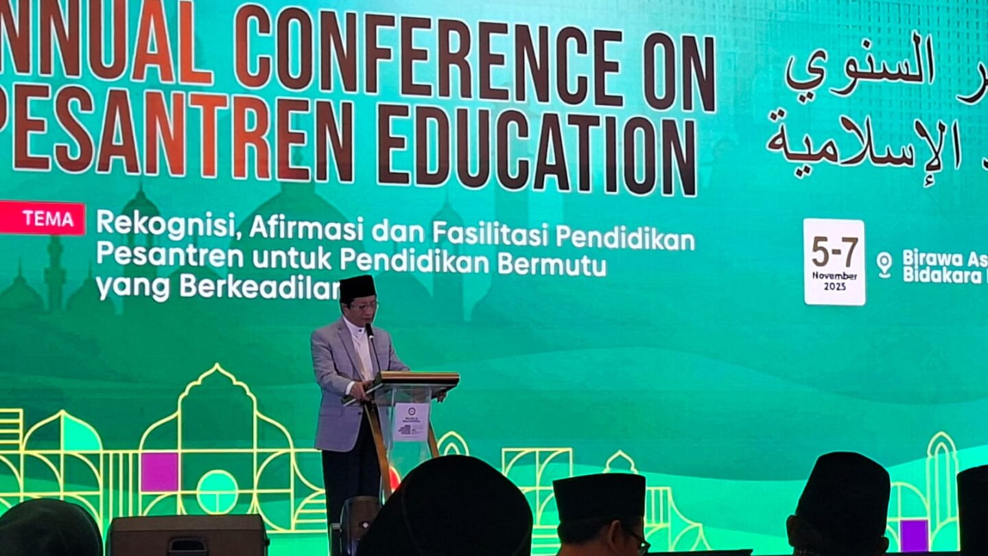 “Pesantren tidak boleh kehilangan rohnya, yaitu kearifan spiritual dan hubungan batin antara guru dan santri. Tantangan ke depan Ditjen Pesantren, mampukah mengembalikan metode laduni?” ujar Menag Nasaruddin Umar dalam sambutannya pada Konferensi Pendidikan Pesantren di Hotel Bidakara, Jakarta (5/11/2025).