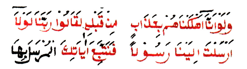 Dan sekiranya Kami binasakan mereka dengan suatu azab sebelum Al-Qur’an itu (diturunkan), tentulah mereka berkata, “Ya Tuhan kami, mengapa tidak Engkau utus seorang rasul kepada kami, lalu kami mengikuti ayat-ayat Engkau (yang Engkau turunkan).”
