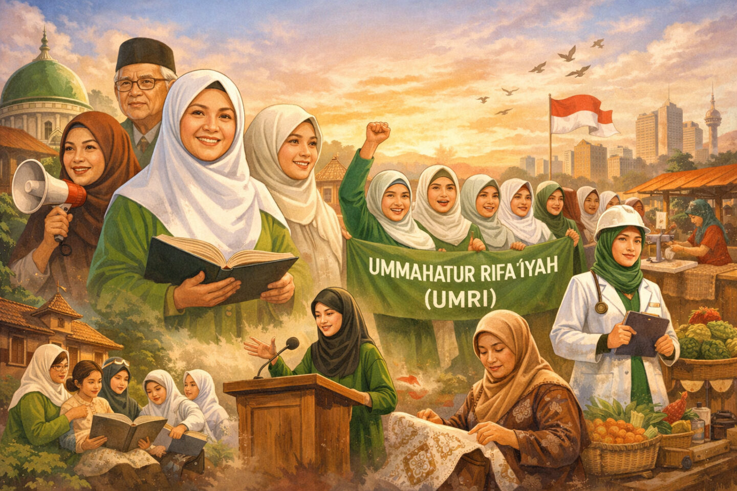 Feature ini disusun berdasarkan Dokumen UMRI (diakses melalui Ny Halimah) dan sumber-sumber akademik tentang gerakan perempuan Rifa’iyah.