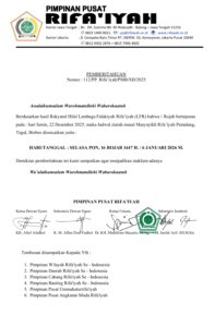 Rifaiyah.or.id, Batang — Pimpinan Pusat Rifa’iyah secara resmi menetapkan penyesuaian jadwal pelaksanaan kegiatan Ziarah Masal Masyayikh Rifa’iyah untuk wilayah Pemalang, Tegal, dan Brebes. Penyesuaian ini dilakukan berdasarkan hasil Rukyatul Hilal yang dilaksanakan oleh Lembaga Falakiyah Rifa’iyah (LFR) dalam rangka penetapan awal bulan Rajab 1447 Hijriah.