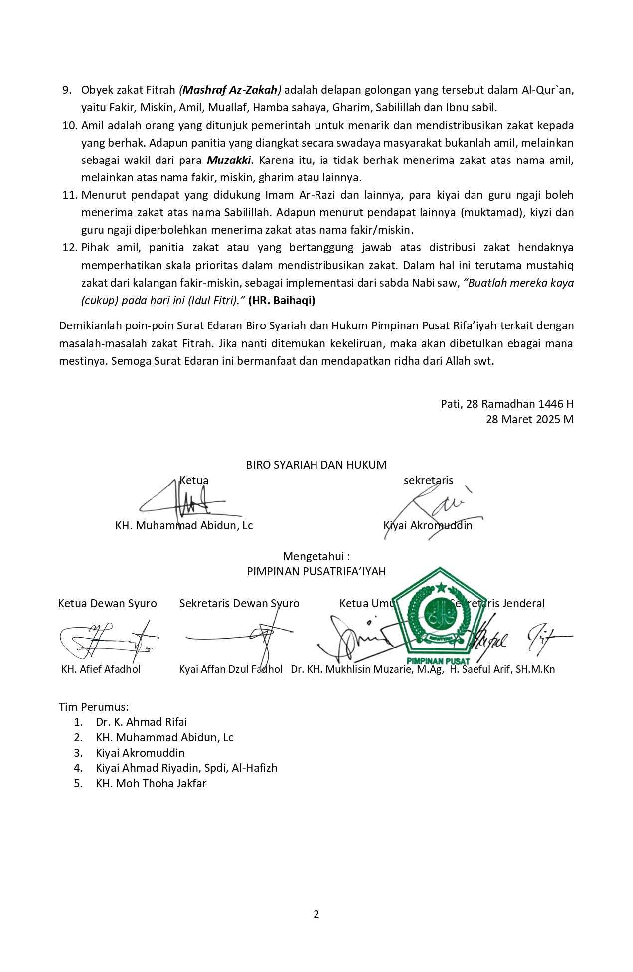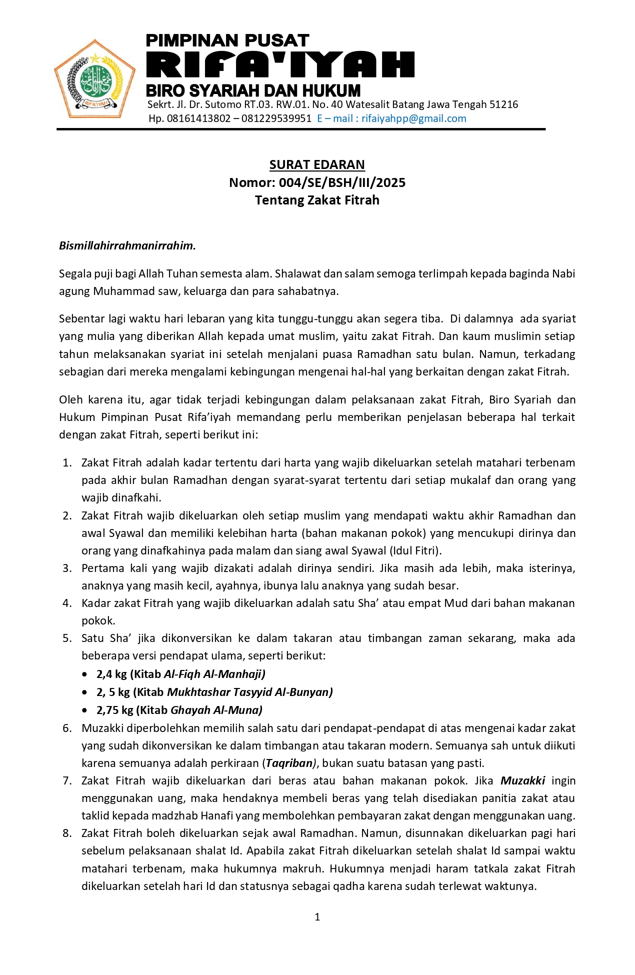 Agar pelaksanaan zakat fitrah dapat dilakukan dengan benar sesuai ketentuan syariat, berikut panduan zakat fitrah yang dirumuskan oleh Biro Syariah dan Hukum Pimpinan Pusat Rifa’iyah.